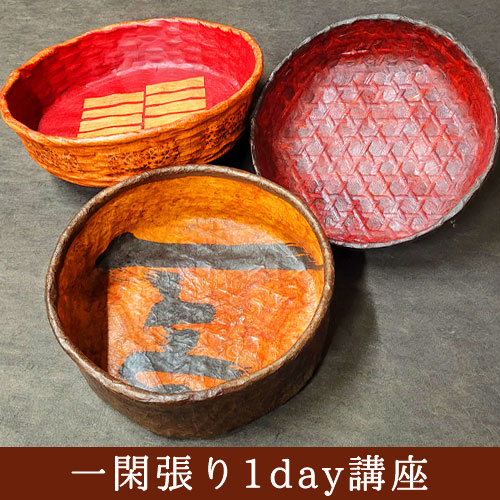 持ち物:かごやザル1個、刷毛2本(2~4cm)、定規(30cm程度)、クリアファイル1枚、新聞紙、ボール2個(のり溶き用と水用)
