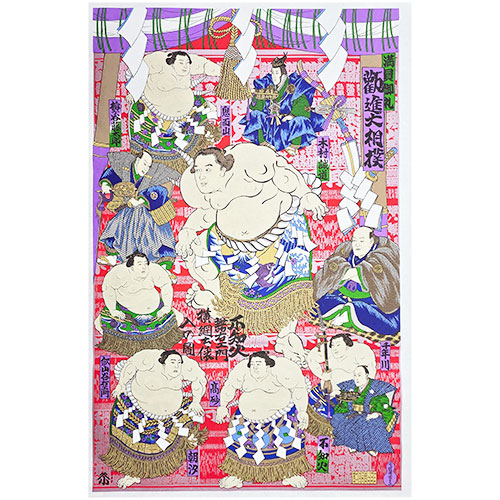 総柄友禅 勧進大相撲 赤