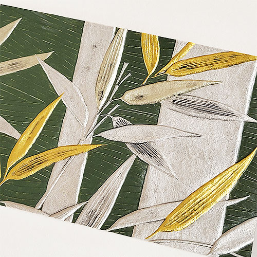 金唐革紙 ハガキ 竹 銀箔・純金箔・彩色