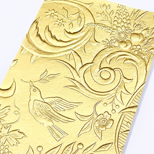 紙の温度 - 金唐革紙 ハガキ 鳥 金箔