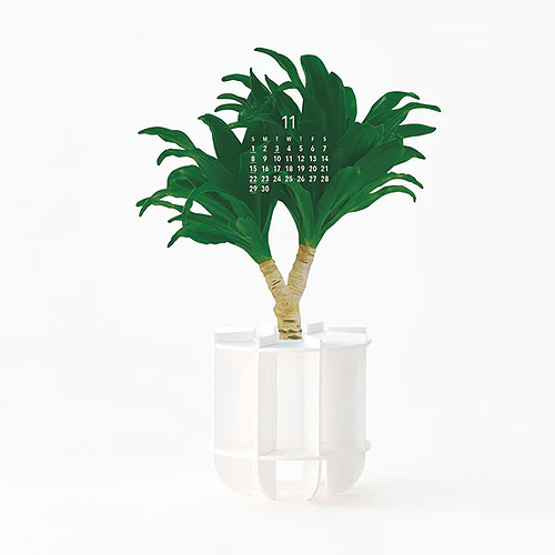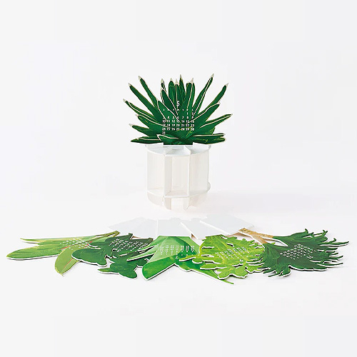 観葉植物をモチーフにしたカレンダーです。ポット型の台座を組みたて、その月のカレンダーの植物を差し込んで使います。アメリカ、ヨーロッパなど海外の美術館、博物館でも大変人気の高い商品です。