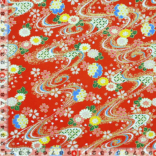 友禅紙 裾模様 赤地ぼかし無 扇子