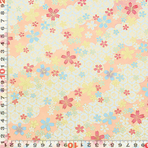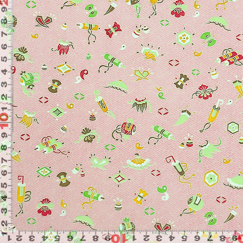 友禅紙1/4切 ピンク地 紗綾形に宝尽くし