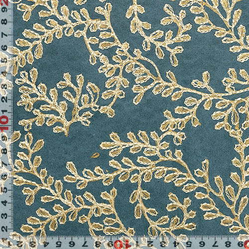 ししゅうP1/4切 紺地金 ベージュ刺繍 葉文様