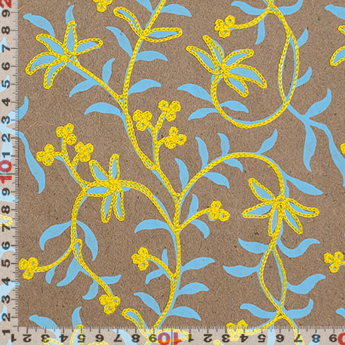 ししゅうP1/4切 茶地水色 黄刺繍 つた文様
