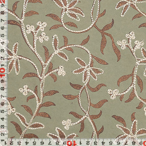 ししゅうP灰茶地銅 ベージュ刺繍 つた文様